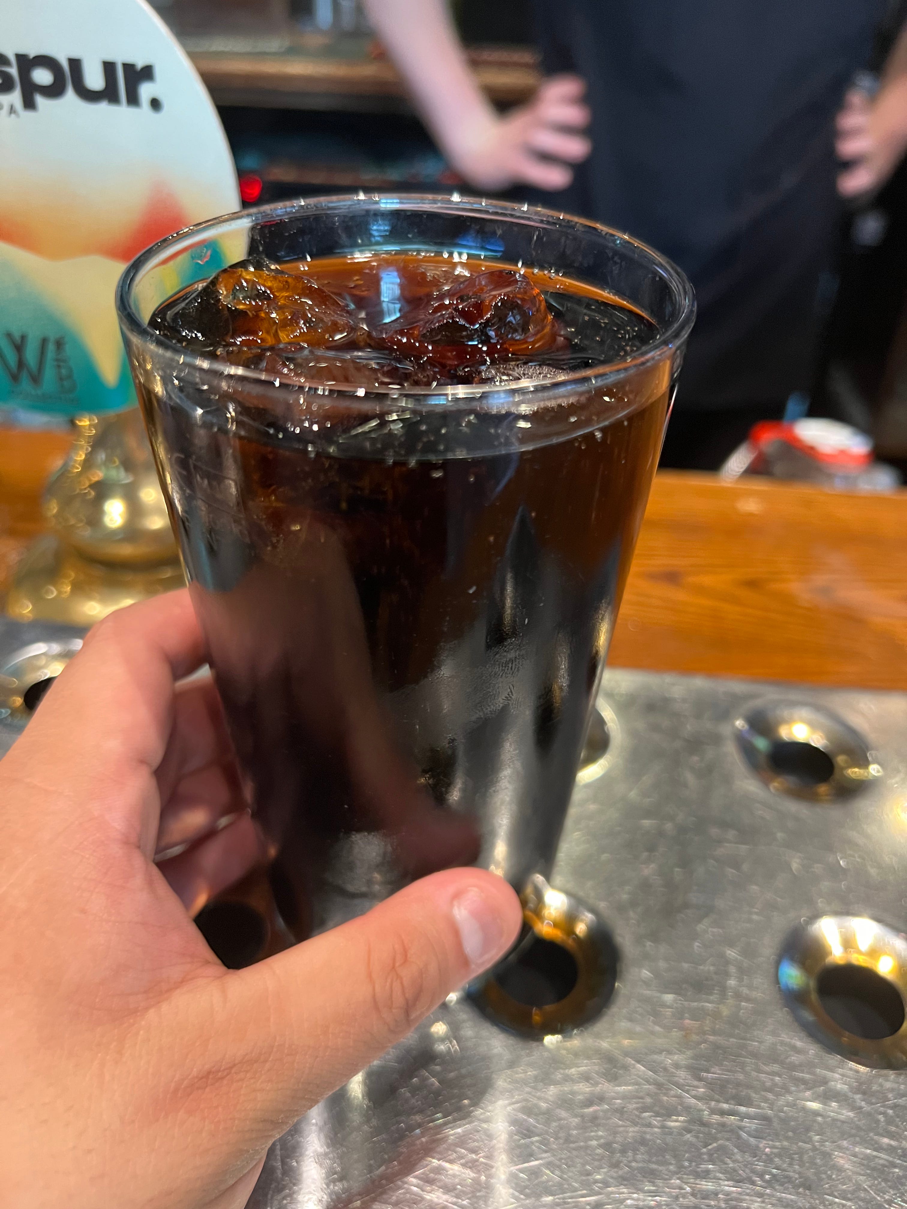这不是一杯普通的冰可乐,这是从家门口酒吧吧台的「枪」里呲出来的一品脱可乐。它的特色就在于,这是酒吧用可乐原浆自己配出来,所以相比于在超市里买的瓶装或者罐装可乐,要!甜!一!点!🥤