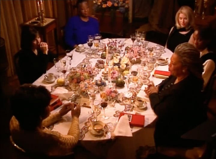 我在2007年第一次看到了十年前,奥普拉和Toni Morrison的那次「读书会」。贵族风的客厅里,美食、烛台、水晶的参与、满桌的鲜花、华美的桌椅、精心的布置。