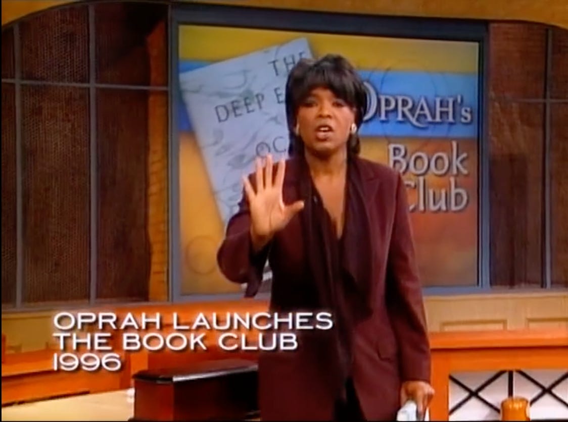 她推荐了作家Toni Morrison在1977年出版的小说《所罗门之歌》(Song of Solomon)。Toni Morrison后来说,她的小说被奥普拉推荐后的销量,比她1993年获得诺贝尔文学奖之后的销量还要多。